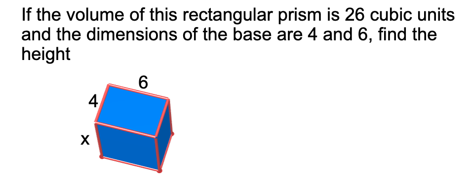 Help i'm doing math help. Finding the volume of a rectangular prism is an incredibly simple task! Think about those cool rainbow prisms you've seen look out: Q1 the rectangular prism shown is formed by stacking up cubes. V = (l x w x h) cubic units.